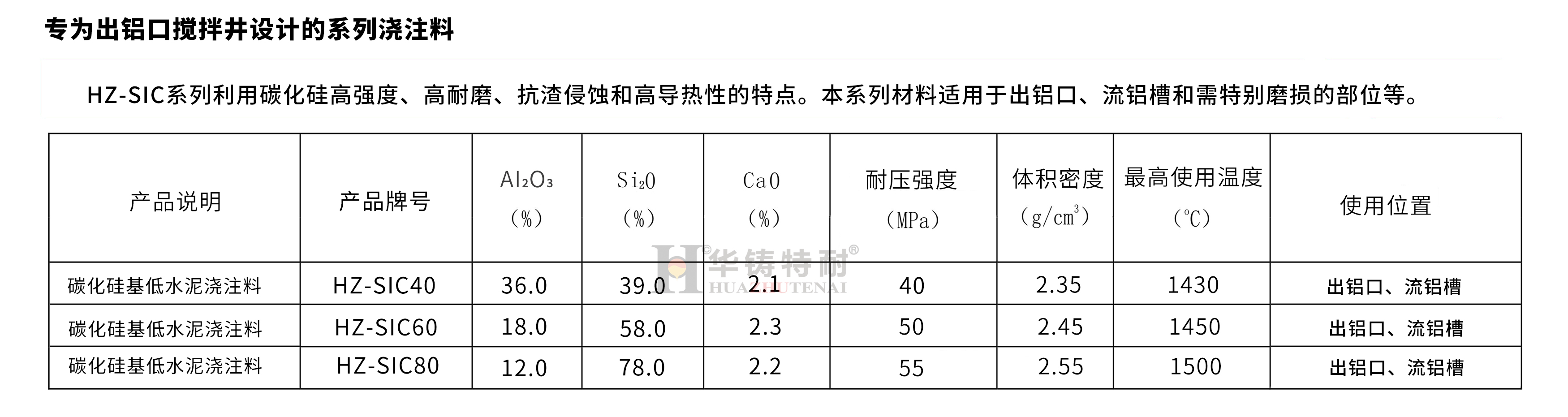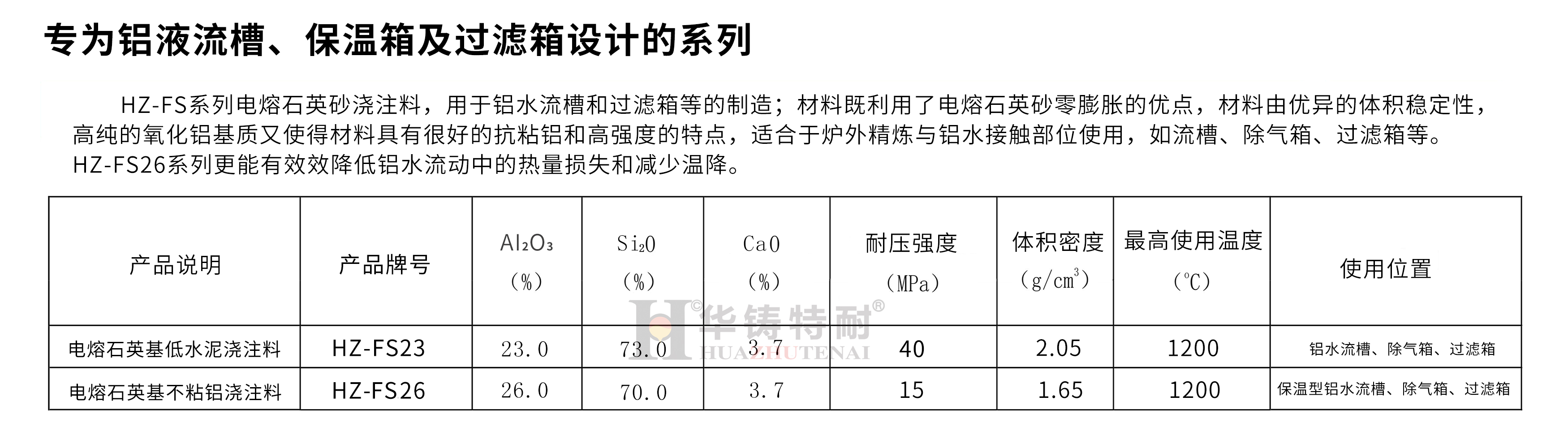 華鑄特耐生產(chǎn)用于鋁加工工業(yè)高溫設(shè)備的全套耐火材料, 產(chǎn)品應(yīng)用領(lǐng)域涵蓋了鋁加工工業(yè)所有與鋁液相關(guān)的高溫設(shè)備。如鋁合金熔煉保溫爐、鋁水流槽、過(guò)濾箱、除氣箱和鋁水包等。我們對(duì)所有與鋁水接觸部位材料都進(jìn)行了鋁水坩堝侵蝕實(shí)驗(yàn),通過(guò)嚴(yán)格的測(cè)試選擇最佳的材料結(jié)構(gòu)設(shè)計(jì)和獨(dú)特的復(fù)合抗粘鋁抗粘劑,材料在950℃以?xún)?nèi)具有很好的抗鋁水滲透性能,在1200 ℃以?xún)?nèi)仍然具有一定的抗粘鋁性能。