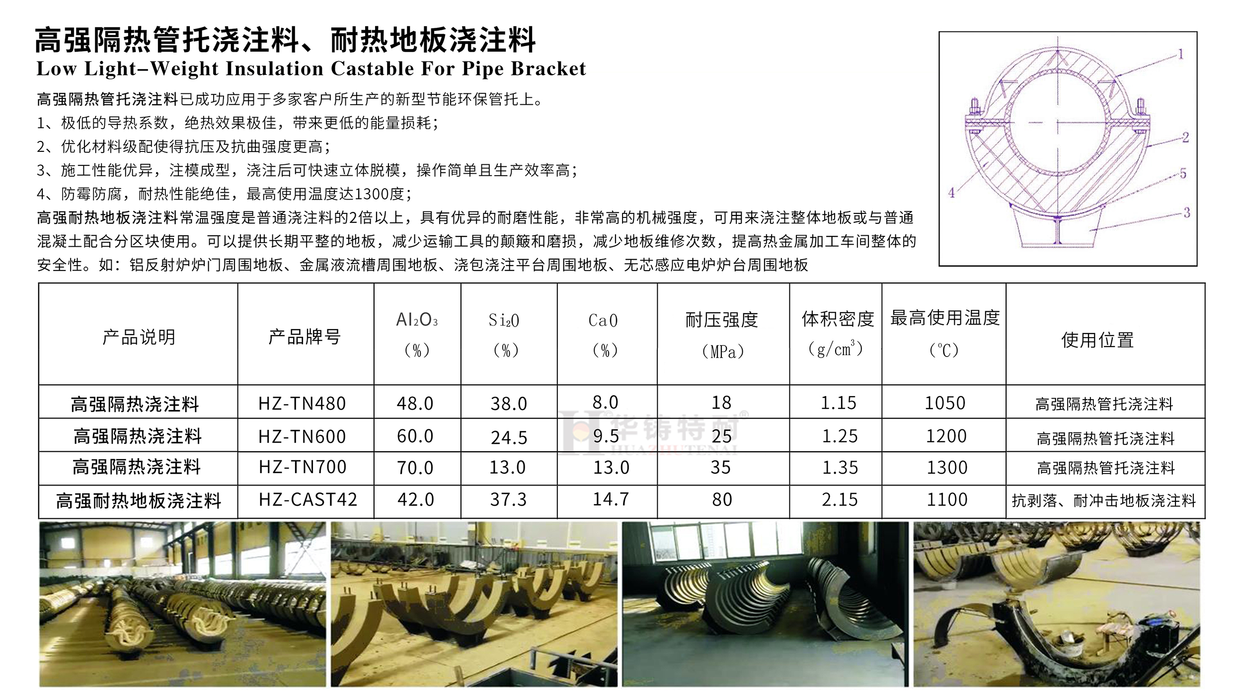 高強(qiáng)隔熱管托澆注料已成功應(yīng)用于多家客戶所生產(chǎn)的新型節(jié)能環(huán)保管托上。